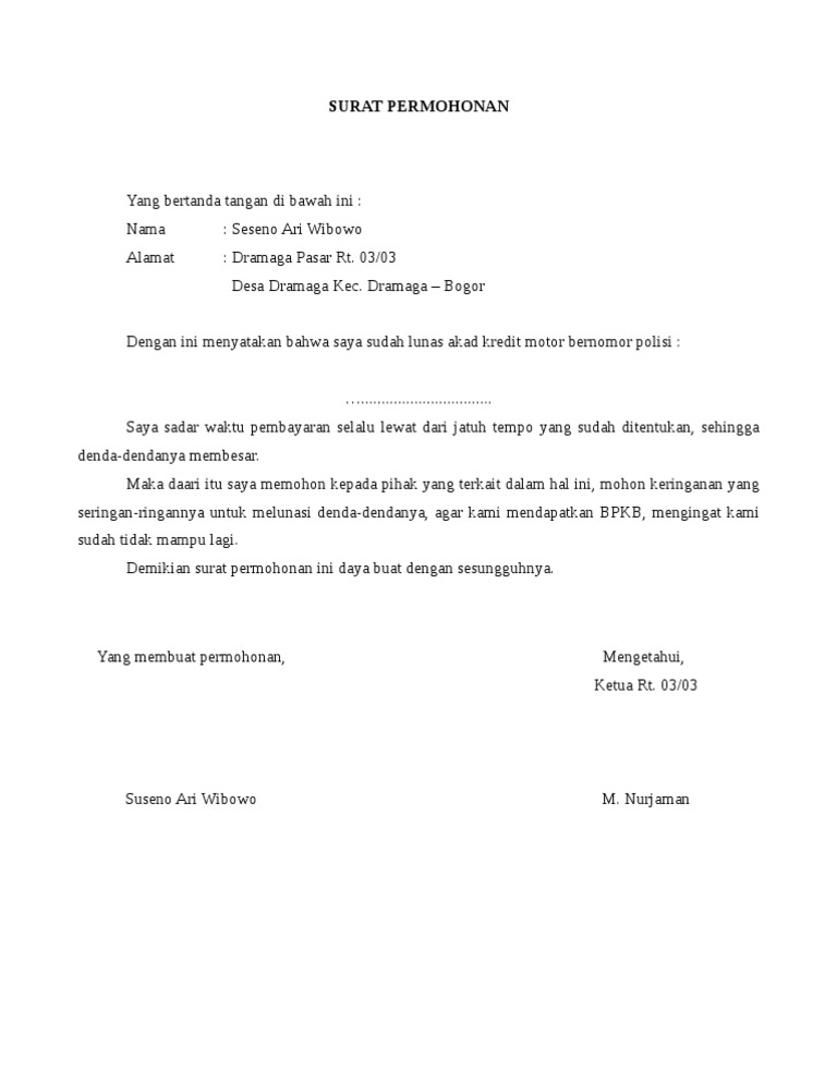 3 contoh surat kuasa pengambilan bpkb motor dan mobil; Inilah pembahasan lengkap terkait contoh surat permohonan penghapusan bunga dan denda bank. Berikut ini contoh surat permohonan penerbitan bpkb dan stnk atas pembelian beberapa unit kendaraan mobil truck kepada dealer dan dirlantas polda setempat. Referensi contoh surat pernyataan lunas hutang 43 dalam. Inilah pembahasan lengkap terkait contoh surat permohonan pelunasan kredit bri.